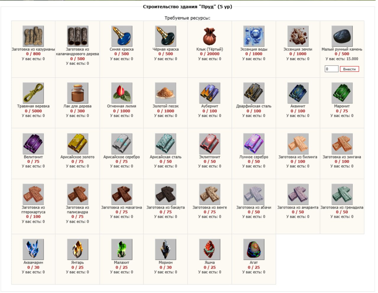 - 5 ур. - стройка - 80000 MP в сутки + при использовании единовременно 1000 MP из пруда дает на 3 часа доп. бонус + 1000 к макс. MP персонажа